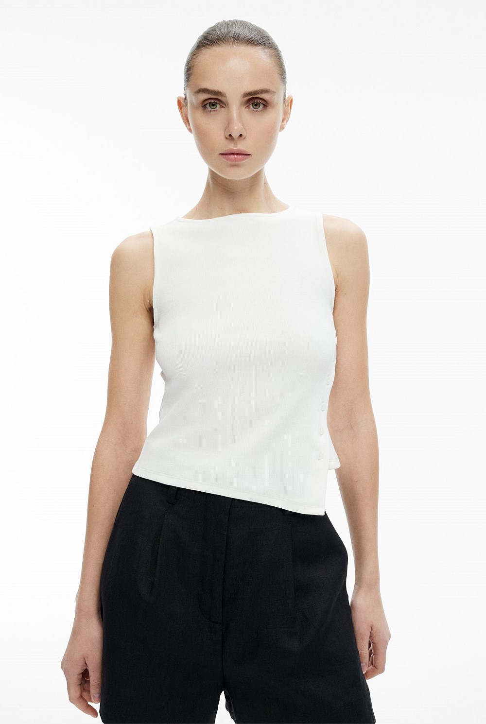 - Asymmetrical Button Rib Tank Top